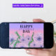 Cartão Flores Roxas Rosadas e Folhas Verdes Dia das Mães