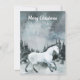 Cartão Floresta de Madeira de Inverno Cavalo Branco Feliz