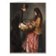 Uma rapariga está vendendo flores em Romania da informação. Veste um lenço e um vestido longo. É pesada guardarar essa maneira.