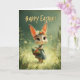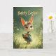 Cartão Flower-Crown Bunny with Easter Basket Meadow Card