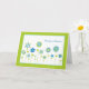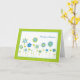 Offer Passover blessings with this stylish card featuring bright green and blue flowers on white background with green border. There is a Star of David in the center of the tallest flower and also dotting the letter "i" in Blessings.