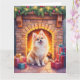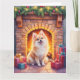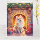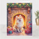 Cartão Fluffy Pomeranian Cozy Christmas Fireplace Dog Art