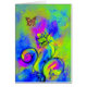 Design vibrante, elegante e artístico. Uma borboleta cintilante colorida com uma flor mágica, flores estilizadas e floridas.Pintura aquosa com papel dourado e folha prateada em cor azul-rosa, cor azul-rosa.. Belo cartão para o Natal, ocasiões especiais, Dia de as mães, aniversários, casamento e Dia de os namorados.