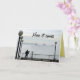 Winter in Seattle has lots of surprises. On this foggy day along the waterfront, you couldn't even see the ferryboat coming in from Bremerton until it was suddenly right in front of you. This photo shows the dock and boardwalk outside the Seattle Aquarium, framed by round lights on top of tall poles, and a man silhouetted by the railing, holding a bouquet of flowers. He's looking out at the almost obscured outline of the top of the ferryboat, as if waiting for it to bring him his true love. The photo looks almost as if it is in black and white. It is bordered by a gray background, which is customizable. On the front of the card are the words, "Here it comes." Inside is the message, "Your ship's coming in! Just in time for your birthday. Hope it's a great one!" Photo copyright Gail Storrs 2014.