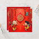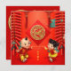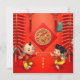 Saudações tradicionais e festivas chinesas com grilhões, nós sortudos e nuvens auspiciosas + papel cortado em ouro + duas crianças bonitinhas para desejar Feliz ano novo. Design na placa plana quadrada com textos para personalizar para a comemoração do Ano Novo Chinês. Cartão de saudação vertical e cartão postal de feriado + envelope vermelho para crianças, adesivo e mais cedo... Perfeito para o Ano Novo Chinês do Cavalo 2026.