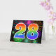 A frente deste design de carta de saudação empolgante, divertida e vibrante apresenta um padrão colorido inspirado em fogos de artifício celebratórios, juntamente com o número "28", que apresenta um padrão de gradação inspirado no arco-íris multicolor, num fundo preto colorido. O dentro apresenta uma mensagem de saudação personalizável, ou talvez possa ser apagado e deixado o vazio se uma mensagem for escrita manualmente. Um cartão de saudação como este pode ser uma maneira divertida e feliz de enviar uma mensagem a alguém que está comemorando seu vigésimo oitavo aniversário, ou talvez a um casal que comemora seu vigésimo oitavo aniversário de casamento, ou a alguém que comemora outro 28 eventos. [~Z0000342]