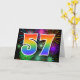 A frente deste design de carta de saudação empolgante, divertida e vibrante apresenta um padrão colorido inspirado em fogos de artifício celebratórios, juntamente com o número "57", que apresenta um padrão multicolorido de arco-íris como gradiente, em um fundo preto colorido. O dentro apresenta uma mensagem de saudação personalizada, ou talvez possa ser apagado e deixado vazio se uma mensagem for escrita manualmente. Um cartão de boas-vindas como este poderia talvez ser uma maneira divertida de reconhecer o cinquenta e sétimo aniversário de alguém, ou talvez o cinquenta e sétimo aniversário de casamento de um casal, ou qualquer outro 57º evento. [~Z0000342]