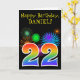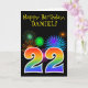 A parte dianteira deste divertimento, características que de design vibrantes do cartão do aniversário um teste padrão colorido inspirou por fogos-de-artifício comemorativos, junto com o número "22" tendo um arco-íris colorido como o teste padrão do inclinação, em um fundo colorido preto. A parte dianteira igualmente caracteriza uma mensagem do cumprimento do aniversário, incluindo um nome destinatário feito sob encomenda. As características internas uma mensagem customizável do cumprimento do aniversário, ou poderiam talvez ser canceladas e sairiam do vazio se uma mensagem deve ser escrita à mão pelo contrário. Um cartão de aniversário customizável como este pôde ser uma maneira do divertimento de reconhecer alguém o segundo aniversário vinte. [~Z0000330]