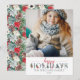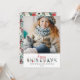 Decore os corredores com folhagens natalinas tradicionais para seus cartões de foto personalizados de Natal! Poinsettias vermelhas brilhantes, frutos de azevinho e pinhas dão um charme florestal colorido em um estilo de aquarela elegantemente rústico. Este design clássico de Natal apresenta doces acentos florais adornando cada letra, combinados com uma fonte de letra cursiva divertida. O padrão de folhagem complementar coordena perfeitamente a parte de trás do cartão.