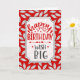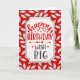 Uma mensagem brilhante, ousada, mas simples, de aniversário, que é perfeita para estar disponível para a necessidade do cartão de "emergência". Vermelho e branco com sotaques pretos em um impressão de folha e estilo moderno.