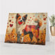 Celebrar o Dia do Namorados com este design do estilo folk-art caprichoso que apresenta um Cão de Bovinos australiano segurando um pequeno coração vermelho na boca. Cercado por padrões geométricos, vinhas e pequenos corações, este trabalho de arte único em vermelho e rosa traz um encanto lúdico e rústico — perfeito para amantes de cachorros e para aqueles que apreciam designs inspirados no povo.