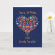 Um Cartão de Aniversário bonito para uma Fiança, com um Padrão Floral em forma de Coração sobre um fundo Azul Profundo, inspirado na Arte Folclórica da Europa Oriental. Parte da coleção Posh & Painterly 'Folk Heart'.