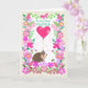 A pretty Valentine's Day greeting card for your Partner that features a cute, smiling hedgehog, carrying a big, deep pink, heart-shaped balloon. The front cover has a border of flowers of various kinds in shades of pink and there is also a pink butterfly, a bumble bee and a ladybird, enjoying the flowers, all on a white background. The front cover greeting is, 'To my dear PARTNER in green lettering and the inside message is just a suggestion and you can easily change it - or delete it altogether - if you prefer a 'blank inside' card.