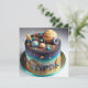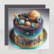 FORA DESTE MUNDO! BOLO DA CAMADA DO aniversário de criança NA PARTE FRONTAL DA PLACA. CÓPIA COMPLETAMENTE EDITÁVEL NA PARTE TRASEIRA.
