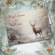 Mande um pouco de Michigan para seus amigos e família nesta temporada Holiday, com esta bela imagem de um veado de galo parado em uma floresta de neve. O texto em vermelho escuro no topo pode ser mudado para qualquer coisa que você quiser, assim como o texto no dentro.