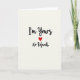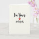 This charming card shares a bold declaration of commitment with warmth and wit. Set on a soft off-white background, the message “I’m Yours” appears in flowing black script, instantly drawing the eye with its graceful style. Just below, a bright red heart adds a strong note of passion and emotion. The phrase “No Refunds,” written in the same elegant lettering, brings a lighthearted twist that makes the message feel personal and confident. The balance of ivory, black, and vivid red creates a striking yet inviting look. With its centered layout and thoughtful contrast, this card expresses lasting love in a clever and heartfelt way, making it perfect for Valentine’s Day or any moment you want to say your love is here to stay. ❤️💌🍫