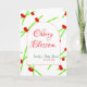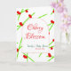 Cartão Forma de arco flor de cerejeira vermelha verde chá