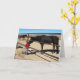 Design de fotografia ocidental. Placa de parabéns divertidos para o novo formando. Arranjado para raparigas e mulheres. Uma garotinha fala com seu cavalo puro-sangue. O cavalo Appaloosa dela está ao fundo. De Wolf Medicine.
