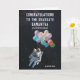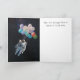 Uma bela peça de arte digital de um astronauta flutuando no espaço usando um monte de balões coloridos. design ideal para qualquer um que adora sonhar, ama o espaço sideral, as estrelas, os planetas, o universo ou simplesmente ama arte surrealista. Cartão perfeito para dizer "parabéns na sua graduação" ou "bem feito!". Personalize o texto no cobrir e no dentro.