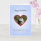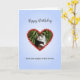 Este cartão de aniversário pode ser usado para gatos, cães, ou qualquer animal de estimação, basta carregar sua própria foto e mudar o texto conforme necessário. Ambas as saudações à frente podem ser editadas: "Parabéns" e "Do mestre da casa!" O fundo azul claro tem um design de pintura de coração para enquadrar sua foto, e há mais dentro de pegadas. A mensagem dentro também pode ser personalizada para se adequar: "Desejando um aniversário perfeito!"