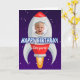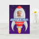 Um belo navio de foguete vermelho num fundo roxo estrelado. Personalize com seu nome infantil.