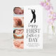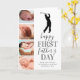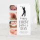 Cartão do Dia dos Pais com novo papai fofo com um fundo branco simples que pode ser alterado para qualquer cor, uma colagem de 4 fotos do seu bebê, uma silhueta de golfista, a frase "feliz primeiro dia dos pais", e uma legenda de papai que é facilmente personalizada.