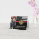 Este design apresenta uma bandeira de bombeiros com listras pretas e brancas, e uma fina faixa vermelha também. "Parabéns" e o crachá de bombeiro ficam acima do nome do bombeiro graduador. Esta design também funciona como excelente para se aposentarem bombeiros, tenentes ou chefes. Celebre em estilo!