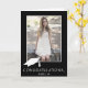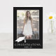 Placa de Boné de formatura para Parabéns preto e branco moderno e simples com um nome de Formando e uma foto. Cartão de graduação com um boné de formatura branco, Parabéns de texto, um nome e uma foto do formando no lado frontal - personalize com seu nome e sua foto. Personalize o dentro de texto da placa para adequá-la às suas necessidades ou apagá-la.