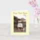 Esta fotografia retrosépia neste cartão de nota personalizável de duas gêmeas meninas de 1959 realmente se destaca. Os gêmeos idênticos de cinco anos bonitos estão vestindo seus vestidos de impressão favoritos que a mãe deles fez para eles. Eles estão no jardim dos fundos de sua casa no conselho com sua irmã mais velha, ela tem seus braços carinhosamente envoltos ao redor dos ombros gêmeos e ela está vestindo um vestido que mostra a moda de 1950 para vestidos completamente deslumbrados vestidos com rede em camadas de cheio debaixo de petinho para dar mais plenitude. As famílias ginger cat se perguntou sobre a foto, o gengibre tom se chamava Rusty. Esta velha foto em preto e branco mostra uma feliz cena familiar da década de 1950 e faz uma única placa retrô. Esta placa retrorreflectora personalizável pode ser personalizada, na frente e no dentro, com seu próprio texto.