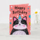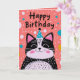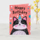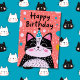 Este é um cartão de aniversário com ilustração de gato preto fofo para amantes de gatos. Dentro do cartão, você pode personalizá-lo com a foto e o nome de uma criança.