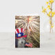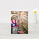 Uma exposição brilhante dos fogos-de-artifício com um Fox Terrier do fio que ostenta um chapéu do "tio Sam". Comemore o Dia da Independência (4 de julho) com este cartão do Fox Terrier do fio do excelente!