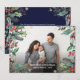 É oficialmente a época de enviar saudações festivas alegres para sua família, amigos e entes queridos! Este cartão apresenta sua melhor foto no formato paisagem, emoldurada por uma borda de gráficos botânicos em uma paleta festiva em aquarela com linhas de tinta e folhas delineadas a dourado, frutos vermelhos, visco verde, agulhas de pinheiro, galhos de pinheiro e outras folhagens de inverno.