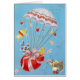 CARTÃO FRANGO VOANDO COM BALÃO DE OVOS VERMELHO ORIENTAL