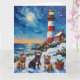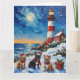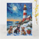 Cartão French Bulldog Christmas Lighthouse Holiday