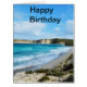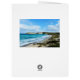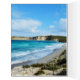 Imagem: longa visão de água azul-do-mar aqua se quebrando em areia branca com vistas de penhascos altos e vegetação exuberante