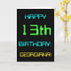 This simple and fun birthday greeting card design features a message like "HAPPY 13th BIRTHDAY, GEORGIANA!". Its appearance is inspired by the field of digital computing. The name on the front and the message on the inside can be personalized. It could be sent or given to somebody who is celebrating their thirteenth birthday, and who perhaps works as a database administrator, a computer programmer, a network administrator, a software developer, an electrical engineer, or who otherwise enjoys using computers. [~Z0000100]