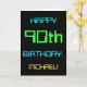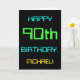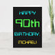 This simple and fun birthday greeting card design features a message like "HAPPY 90th BIRTHDAY, MICHAEL!". It also features a fun appearance inspired by digital computing. The name on the front and the message on the inside can be customized. It could be sent or given to somebody who is celebrating their ninetieth birthday, and who perhaps works as a computer programmer, a software developer, a database administrator, a network administrator, an electronics engineer, or who otherwise enjoys using computers. [~Z0000100]