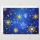 Cartão Fundo Azul de Natal com Flocos de Neve Dourados