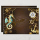 Cartão Fundo de madeira com cavalo de mar mecânico