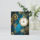Turquesa, texturizada, fundo steampunk com latão e engrenagens douradas, chave prateada e relógio. Estilo Steampunk.
