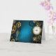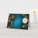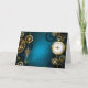 Turquesa, texturizada, fundo steampunk com latão e engrenagens douradas, chave prateada e relógio. Estilo Steampunk.