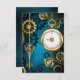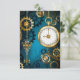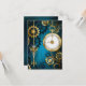 Turquesa, texturizada, fundo steampunk com latão e engrenagens douradas, chave prateada e relógio. Estilo Steampunk.