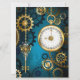 Turquesa, texturizada, fundo steampunk com latão e engrenagens douradas, chave prateada e relógio. Estilo Steampunk.
