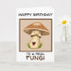 Cartão de aniversário engraçado para aquele fungo na sua vida. Um cogumelo castanho e creme com um rosto sorridente trará um sorriso ao rosto daquela pessoa especial.