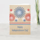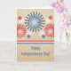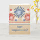 Placa de saudação Hip and Trendy Funky Quarto de julho Fireworks e Stripes com gráficos de fogo de artifício vermelho, branco e azul e faixas. Esta carta legal é uma maneira maravilhosa de desejar aos amigos e à família um Feliz 4 de julho! Personalize com sua própria saudação e mensagem personalizada! Clique no botão "Personalizar" para alterar/remover texto ou alterar fontes e cores do texto.