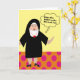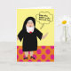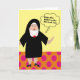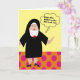 Humorous Catholic Nun Greeting card for any occasion, "Does this habit make me look fat?". Artist drawing of a nun wearing a traditional black habit, black veil and red rosary. Silly little nun greeting cards are perfect for any occasion or to send to your favorite nun just to say hello. All graphics by Gail Gabel, Ohio.