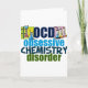 Funny chemistry teacher gift that reads OCD Obsessive Chemistry Disorder next to science beakers full of chemicals for an experiment. A cool chemistry major present for a scientist.