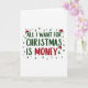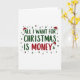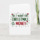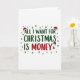 Wish someone a joyful and heartwarming holiday season with this festive Christmas card that's sure to bring a smile to their face! 🎅🏼🎄🎁 The design features a bold, festive text graphic that reads: "ALL I WANT FOR CHRISTMAS IS MONEY." The text is colored in holiday red and green, with small Santa hats playfully perched on the letters, adding a touch of whimsy. The background is sprinkled with dollar signs in red and green, along with tiny snowflakes, creating a fun and festive atmosphere. This relatable and funny card is perfect for friends, family, or coworkers who appreciate a sarcastic sense of humor. It's the ideal way to spread holiday cheer and share a laugh this Christmas season! 🎄✨