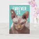 Forever 21?! This hairless cat with old lady makeup is forever 21... with 100 years of experience. We can still think young even though we've been around forever. Funny card for baby boomers who still act like they're 21(I know from personal experience).