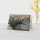Um gorila preto se reclina contra uma rocha com um olhar maravilhado em seu rosto na frente deste engraçado cartão de aniversário. O texto em branco diz "É o seu aniversário?". O dentro diz "Eu vou tentar sufocar qualquer gritar primitivo" e depois em um texto em itálico menor, "Espero que seja feliz!" Todo o texto, frente e dentro, é fácil de personalizar, então você pode fazê-lo dizer o que quiser. Use sua imaginação!